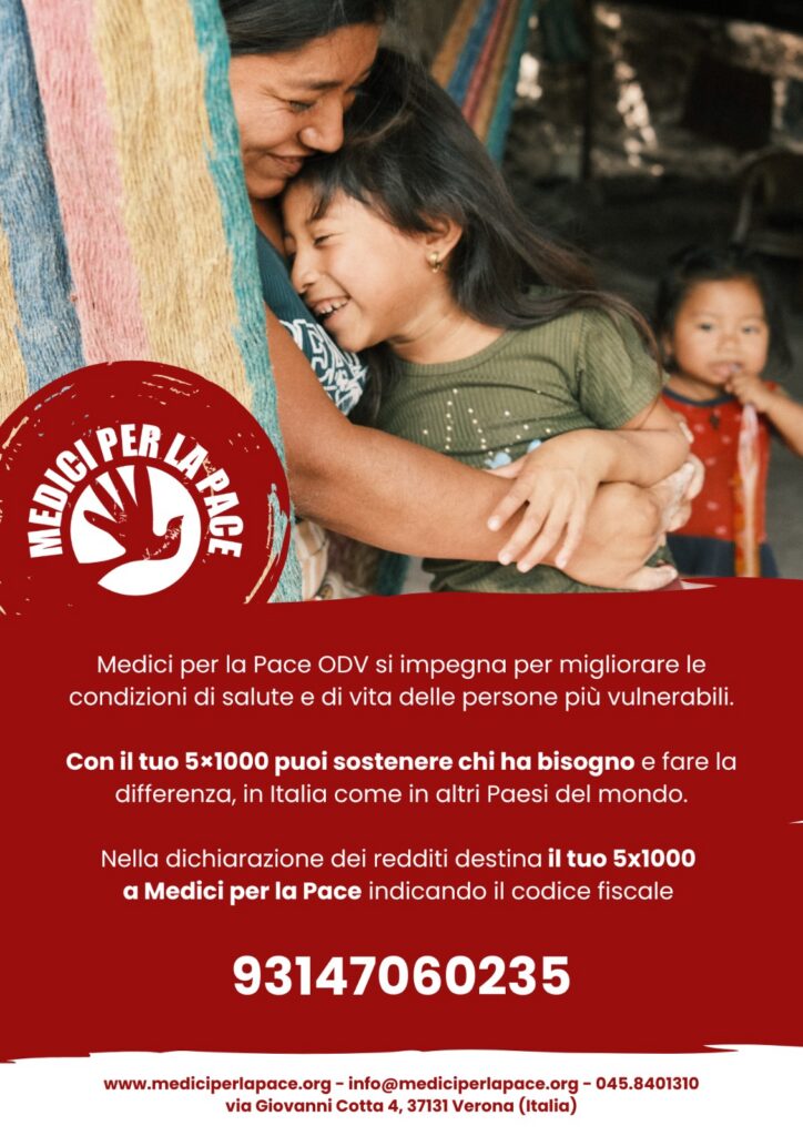 Ogni giorno, in molte parti del mondo, l’accesso alle cure mediche resta un diritto negato a milioni di persone. Scegliere di destinare il proprio 5×1000 a Medici per la Pace significa compiere un gesto semplice, gratuito e profondamente concreto per cambiare questa realtà, portando assistenza sanitaria nel territorio di Verona e nel resto del mondo, dove povertà, conflitti e marginalità sociale impediscono il diritto alla salute.